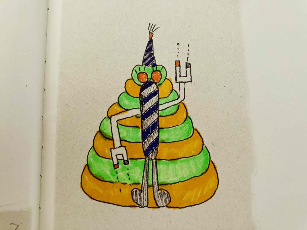 まず、うんこ手前の棒キャラクターを描いたあと、最後に肉付けとしてソフトクリームを描いたら、知らぬ間にうんこになってました。