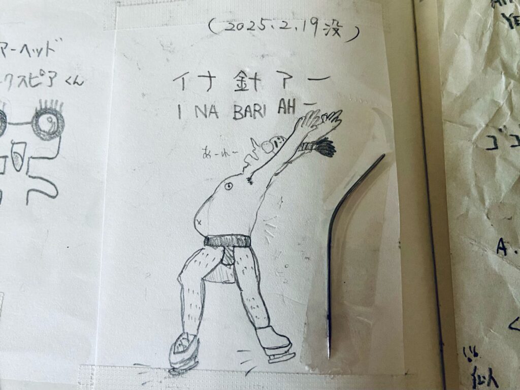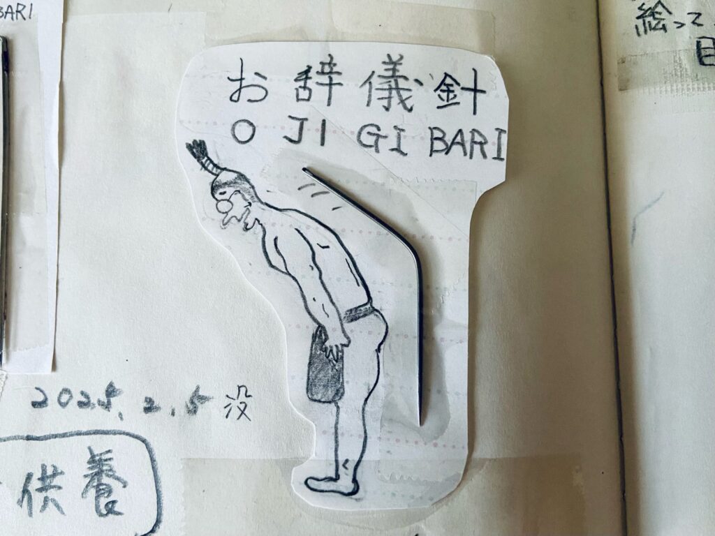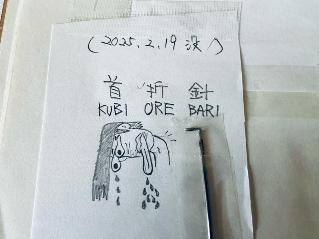 そこで思いついたのが、曲がった針の形をモチーフに絵を描いて供養すること。これまで、3本の針が曲がって供養してきました。