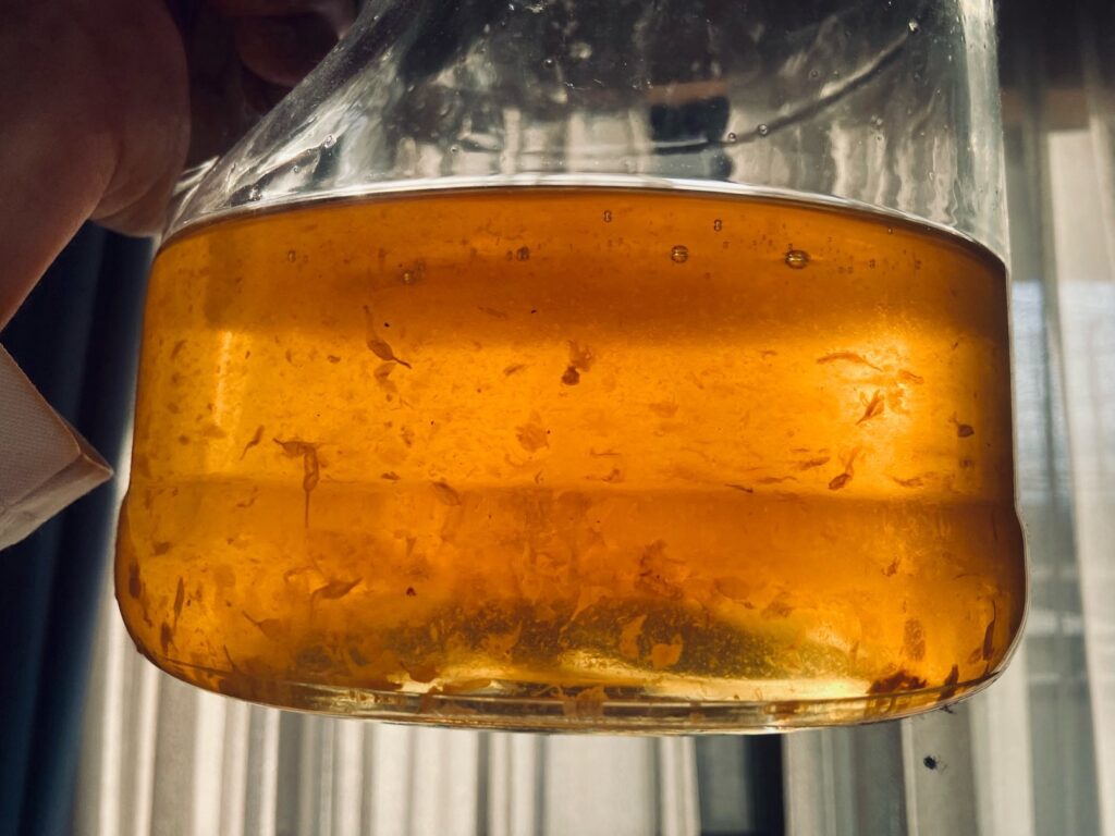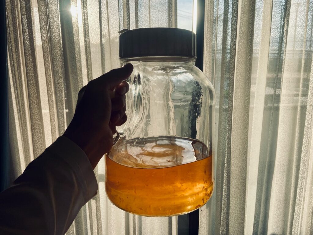 一年後。ゆずの実や皮は漬けてから1ヶ月で取り除き、あとは放置。って、中身減りすぎやろ。